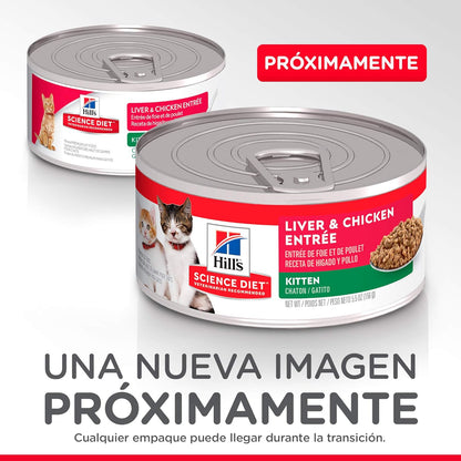 Alimento húmedo premium para gatitos hasta 1 año de edad. Receta de hígado y pollo con textura suave y lisa, formulada con nutrición balanceada para fortalecer la inmunidad y salud digestiva de tu gatito. Sin colores, sabores ni conservadores artificiales. Presentación en lata de 156 gramos, apta para todas las razas y tamaños. Al cumplir un año, transiciona gradualmente a Hill's Science Diet Adulto durante 7 días para una alimentación continua y equilibrada.