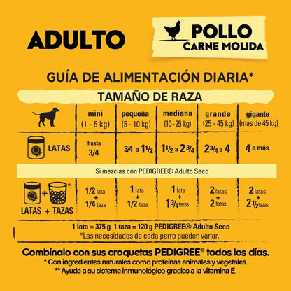PEDIGREE Alimento para Perros Adultos, Sabor Pollo Carne Molida 375 Gr, Paquete De 24 Latas