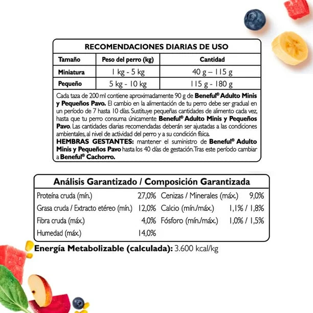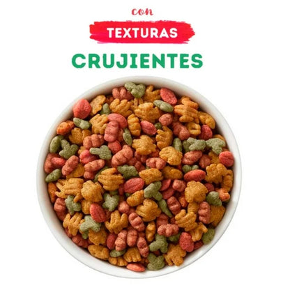 Purina Beneful Adulto Minis Sabor Salmón es un alimento seco completo para perros adultos de razas minis, formulado con croquetas pequeñas que facilitan la masticación y el consumo diario. Contiene salmón como fuente de proteína que ayuda a mantener músculos fuertes y una nutrición equilibrada, además de ingredientes con antioxidantes que apoyan la salud digestiva y el bienestar general. No contiene colorantes ni saborizantes artificiales, ideal para una alimentación diaria adaptada a perros pequeños.