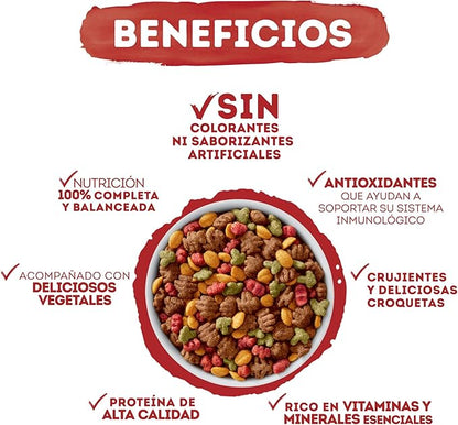 Purina Beneful Original Adulto Sabor Carne 10 kg es un alimento seco completo para perros adultos de todos los tamaños, con proteína que ayuda a mantener músculos fuertes y una mezcla de frutas y verduras que aportan antioxidantes y apoyan la salud digestiva. No contiene colorantes ni saborizantes artificiales y es ideal para su alimentación diaria.