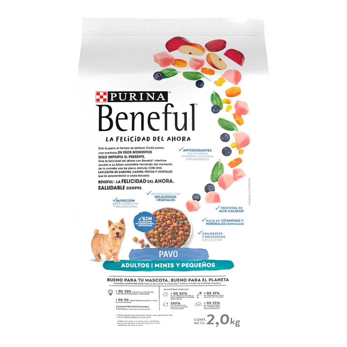 Purina Beneful Sunrise Adulto Minis Original Sabor Pavo es un alimento seco completo para perros adultos de razas minis, formulado con croquetas pequeñas ideales para su tamaño y ritmo de vida. Contiene pavo como fuente de proteína que ayuda a mantener músculos fuertes y una nutrición equilibrada, además de ingredientes que aportan antioxidantes y favorecen la salud digestiva para su bienestar diario. No contiene colorantes ni saborizantes artificiales, lo que lo hace una opción confiable para la alimentación cotidiana de perros pequeños.